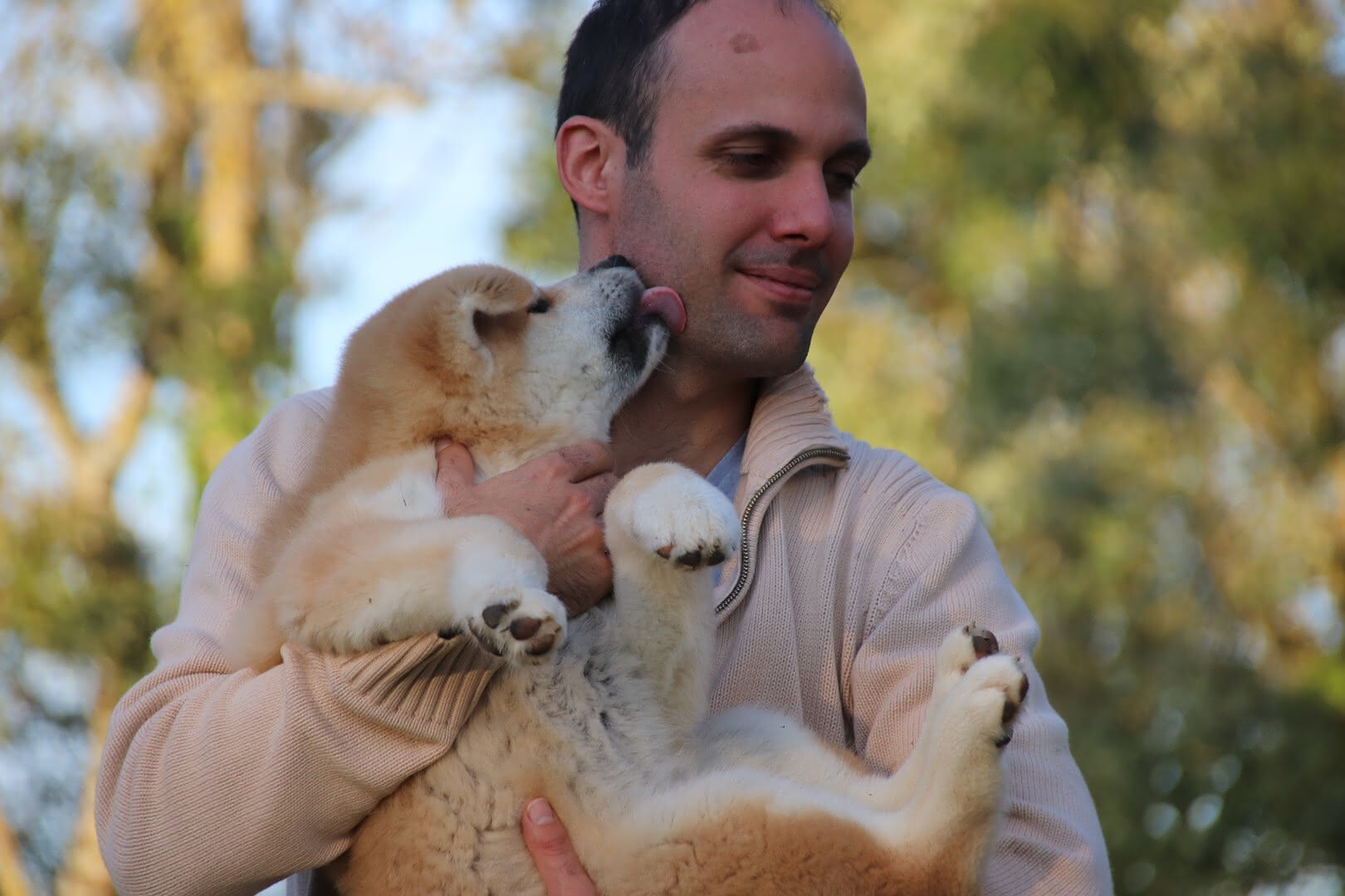 Ce n’est qu’à l’âge adule que nous choisissons, mon mari et moi, de prendre un nouveau compagnon et que nous devenons propriétaires de notre première chienne Akita inu après avoir découvert la race dans le célèbre film Hatchi et nous être bien évidement renseigné sur celle-ci. Peu de temps après l’arrivée de I’Kayla, je tombe littéralement amoureuse de cette race au physique et au caractère bien particulier. Nous décidons donc de lui prendre un camarade de jeux, c’est ainsi qu’Inouk entre dans nos vies.